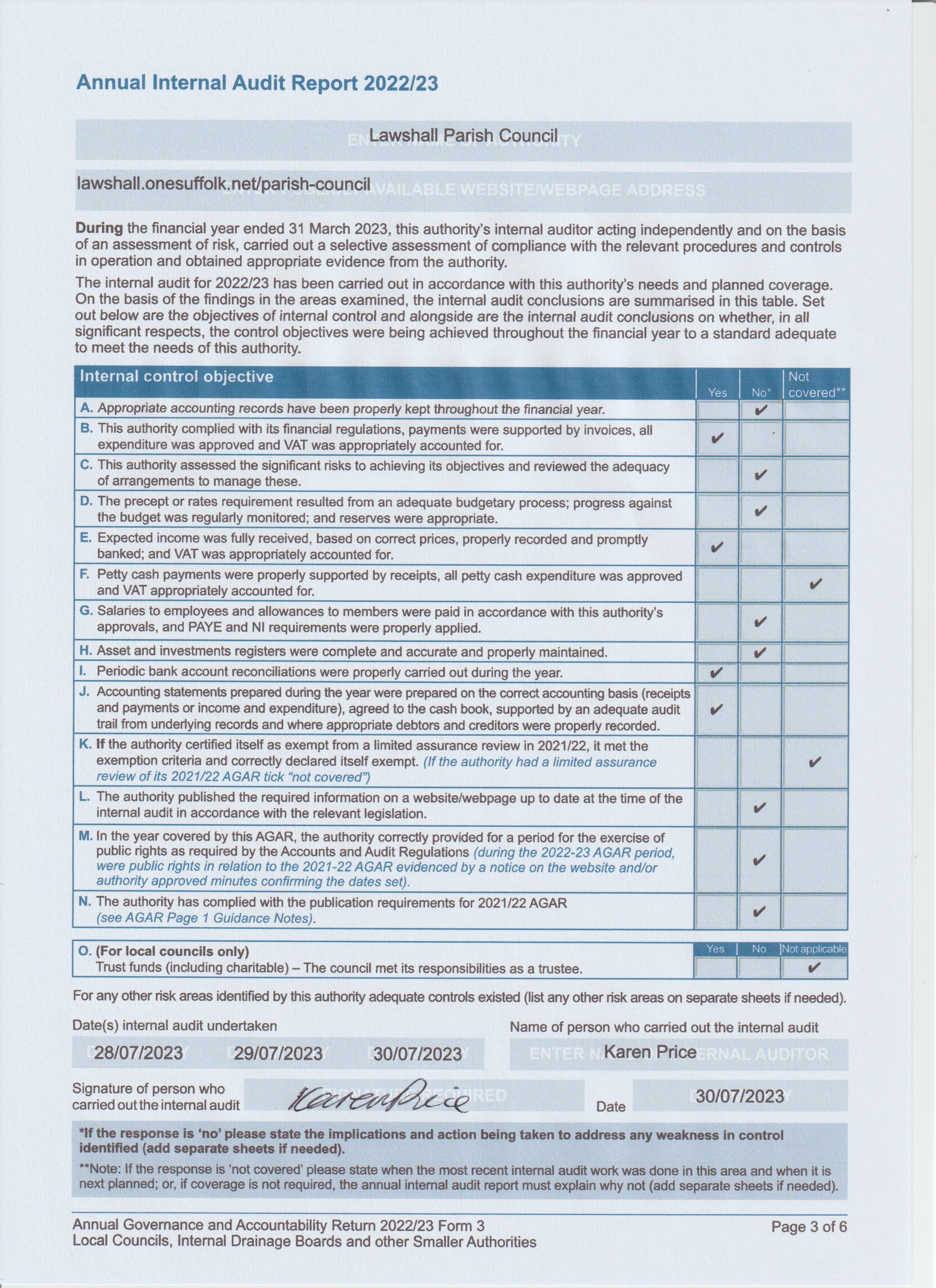 Lawshall Parish Council Internal Audit Report 2022 to 2023 (jpeg)
